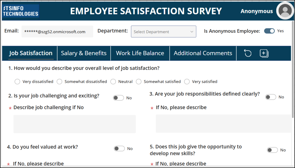 Enhance employee engagement and workplace satisfaction with our Power Apps-based Employee Satisfaction Survey App. Gather real-time feedback, analyze insights, and make data-driven decisions to improve your organization’s culture.